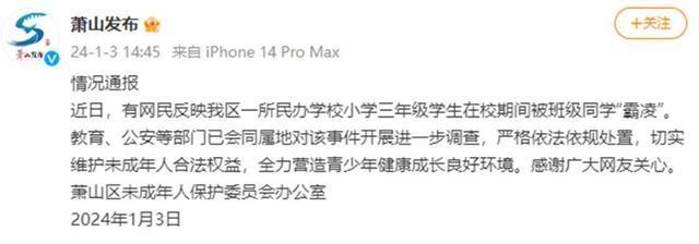 随后,萧山区未成年东谈主保护委员会也对此事作念出回话,称素养和公安部门会对同属地该事件进行进一步探询,会切实珍视未成东谈主正当职权。