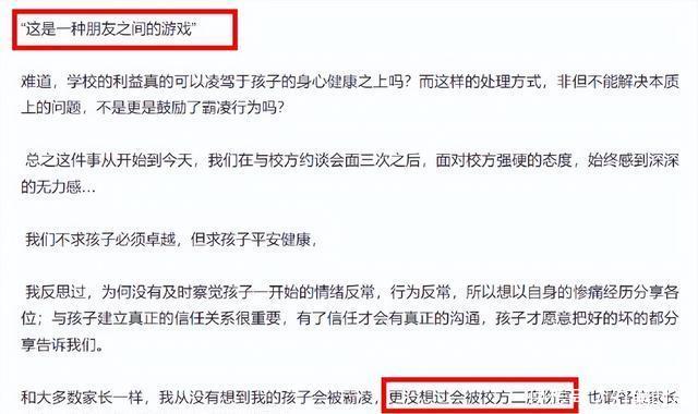 林宁瑞称我方8岁的犬子就读于杭州威雅推行学校,皇冠比分在和犬子亲密相处一周后,林宁瑞犬子暗暗告诉我方被校园霸凌。 林宁瑞本觉得学校会公平惩办,没思到却被校方“二次伤害”。林宁瑞称校方在二对一致使多对一的情况下和孩子面谈,试图将校园霸凌解读为“一又友之间的一种游戏”。学校的不手脚致使遁入,让林宁瑞直言难以接受,这才有了这篇长文。